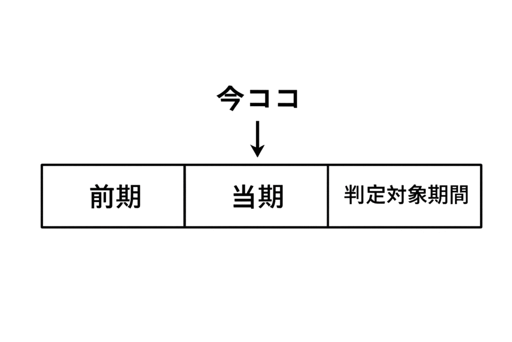 - 判定対象期間(来期):「当期」からみたときの来期。課税方式の判定対象となる期。